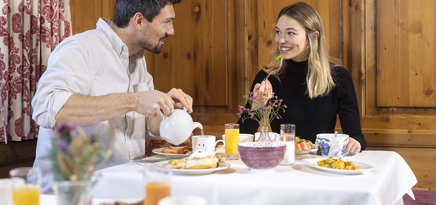 • Guten-Morgen-Frühstück mit frischem Brot und Gebäck sowie einem "Brot des Tages" - ofenfrisch aus der Backstube Lech. Wir verwöhnen Sie neben einer großen Brotauswahl mit á la carte Kaffee und frischen Eiergerichten.
